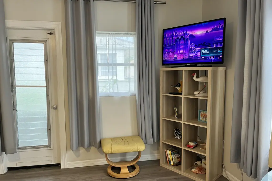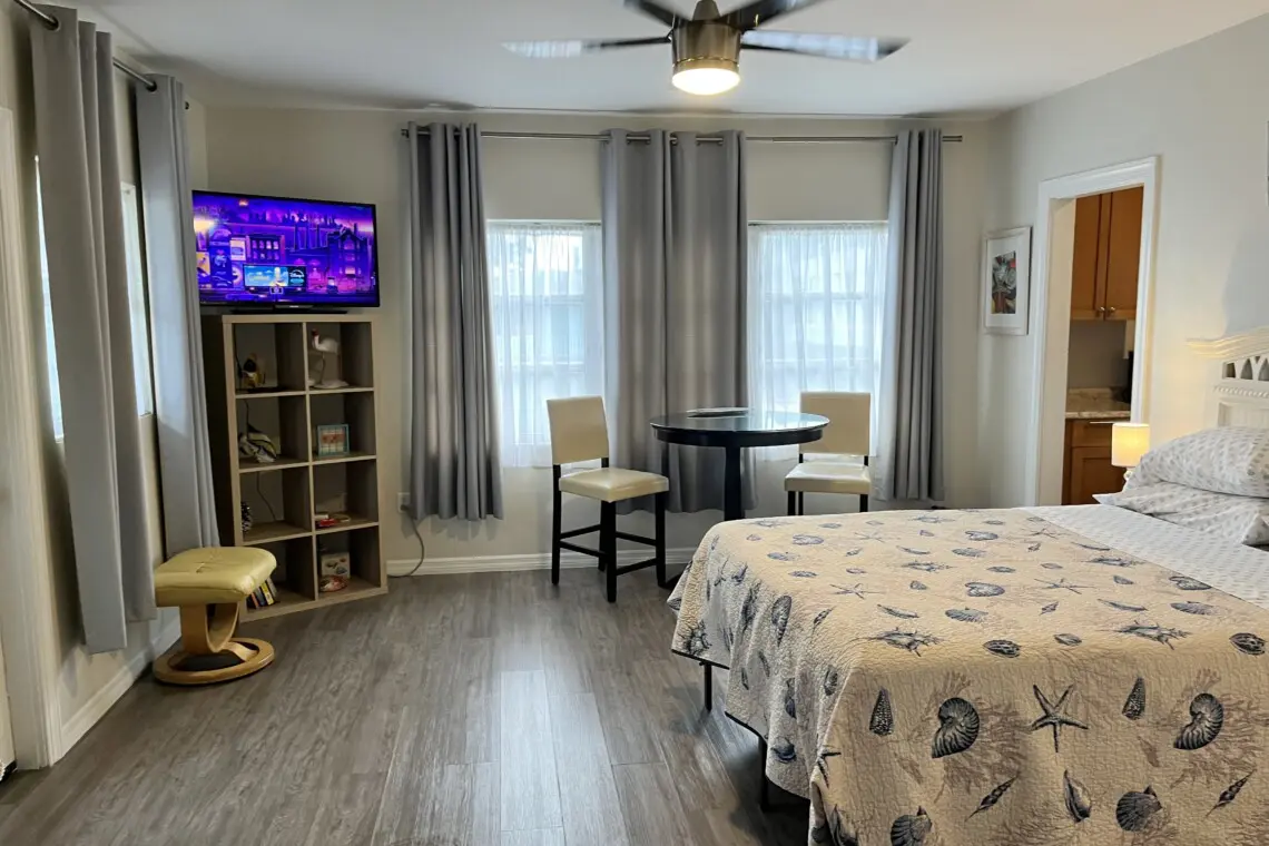 Keep it simple at this peaceful and centrally-located place in Southside Village, near Hillview and walking distance to hospital. The village offers many restaurants, boutique stores and wonderful Morton’s grocery store and coffee shop. 10 minutes ride to Lido Key and Siesta Key beaches. Lovely studio apartment with private kitchen and bathroom! Lovely outside private Juliet balcony sitting area and large shared patio area with bbq grill. Best area of Sarasota!