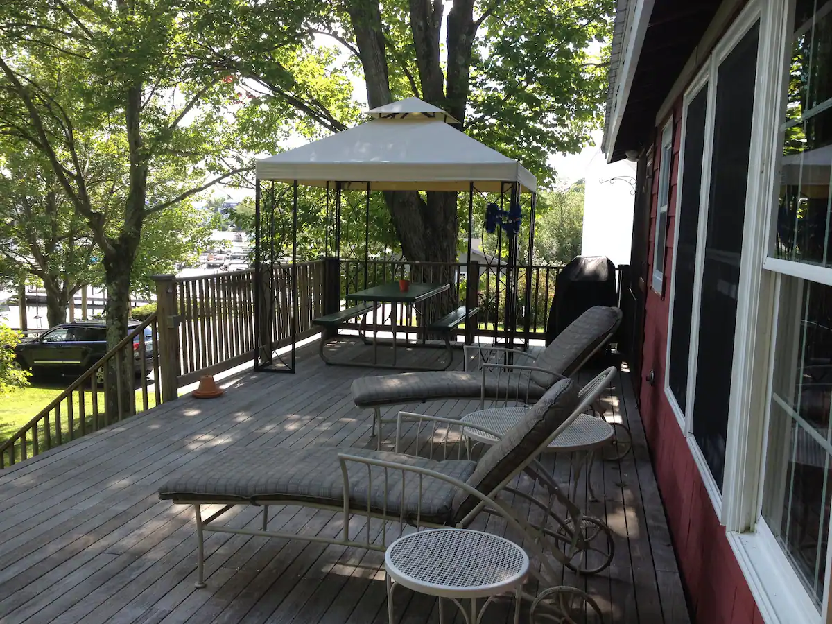 Great Wolfeboro Winnipesaukee waterfront cottage! Includes 5 kayaks, 2 canoes, paddle board & boat and a sunfish sailboat! 3 bedrooms, indoor and outdoor hot showers! Large deck and big grassy lawn and camp fire! Min of 3 nights, weekly in summer.